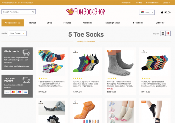 Selling the coolest and out there novelty socks products through your dropshipping store, with all the products hand chosen to complement each other without them being overly available in the local market to ensure you keep your edge of uniqueness, with worldwide delivery.